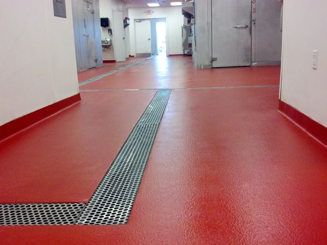 ■ 地坪需要有著優(yōu)異的防滑性能。食品廠地面處于長期潮濕甚至泡水。容易產(chǎn)生滑倒的人身傷害事故。安必信水性聚氨酯砂漿地坪摩擦系數(shù)大于0.6,光滑和特殊紋理解決了易清潔和在濕環(huán)境下防滑倒的功能平衡。